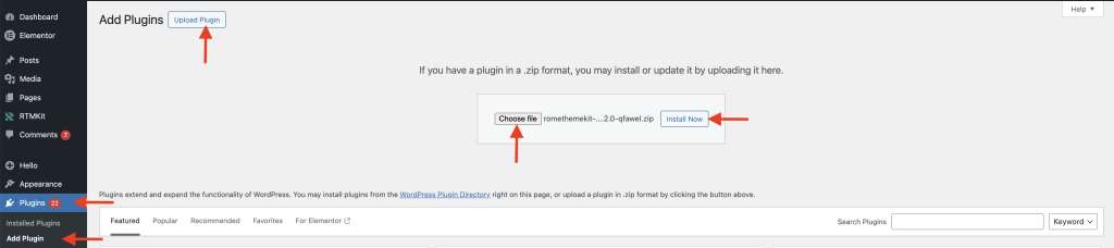 • Choose the RTMKit Pro Plugin file (v1.2.0) that you just downloaded Click Install Now Click Activate Plugin