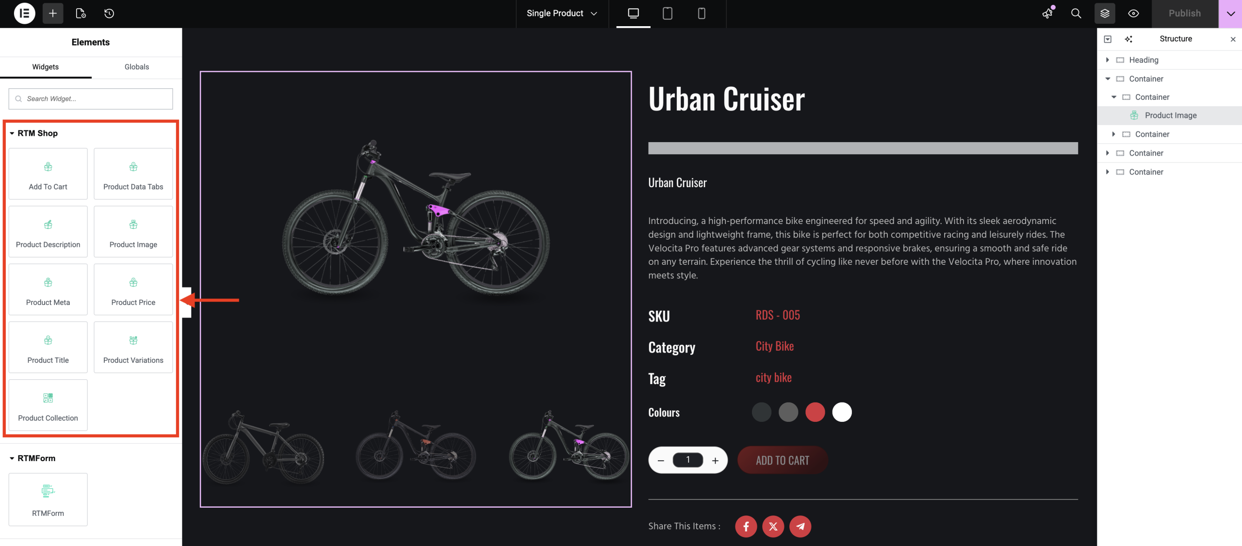 4. Make sure to explore and select the appropriate widgets from RTMShop to build a complete and visually appealing Single Product layout.