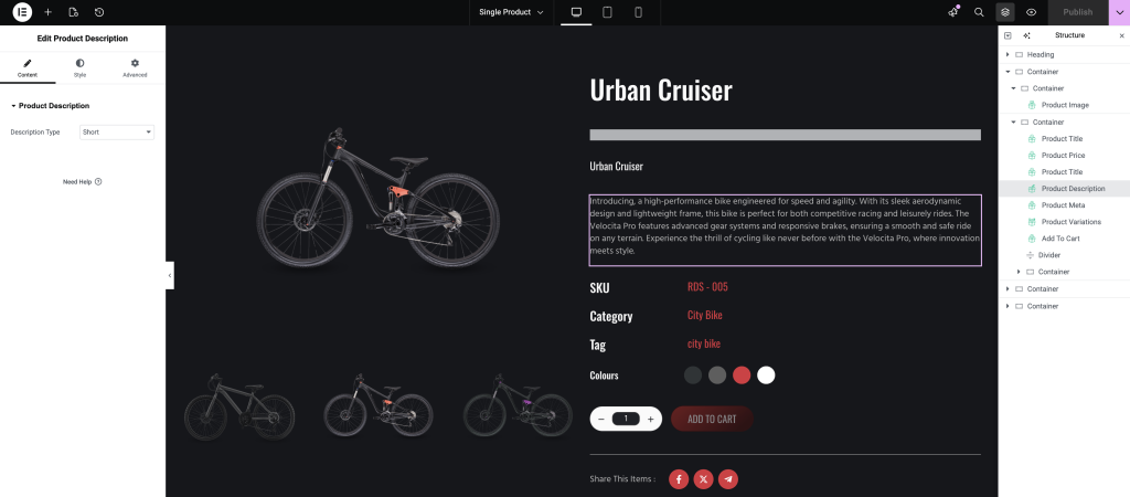 This will automatically display your product description. Just like before, you can customize both the content and styling directly from the settings panel.