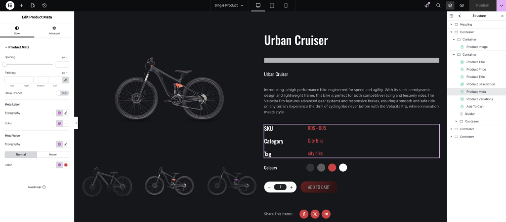 • Fourth, the Product Meta widget.