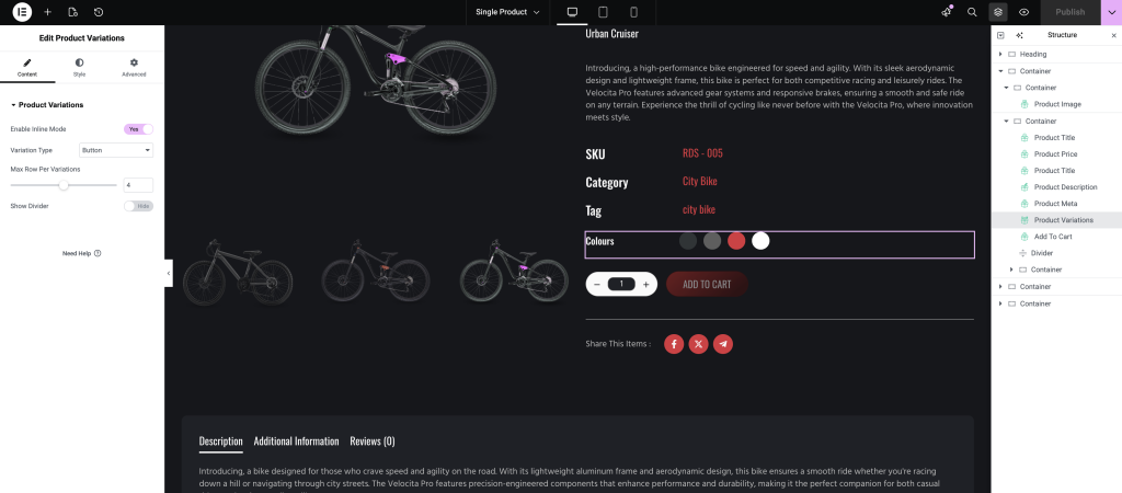 • Fifth, the Product Variations widget.