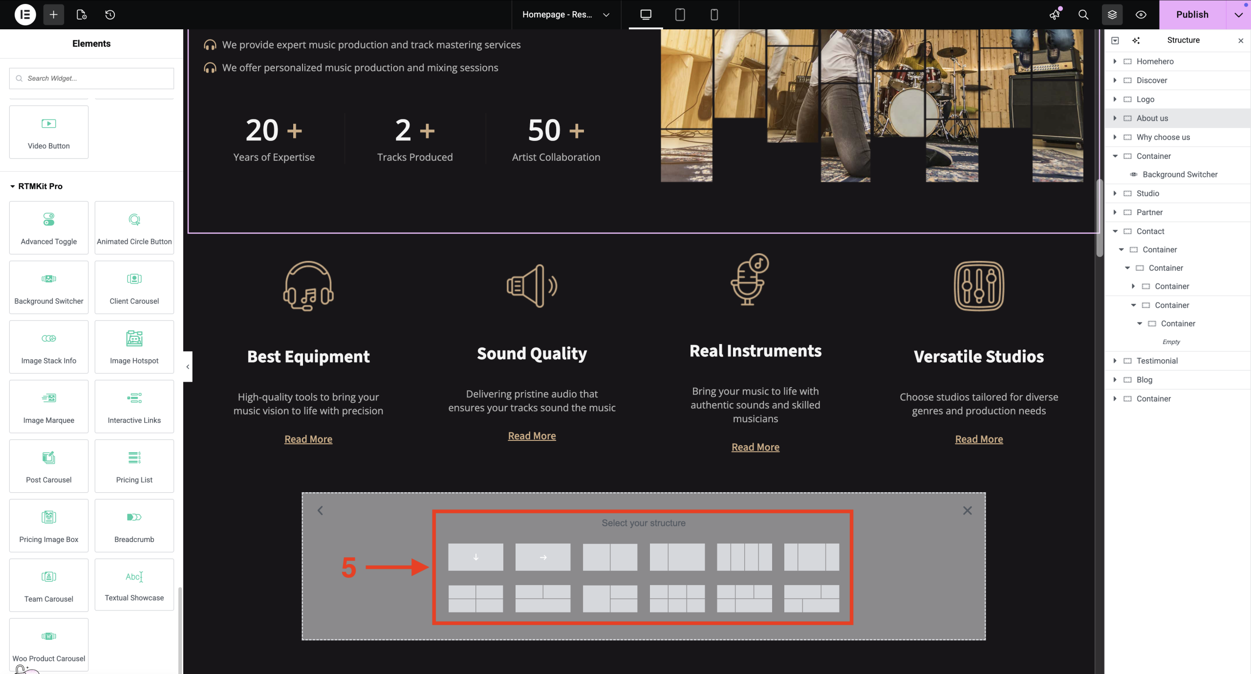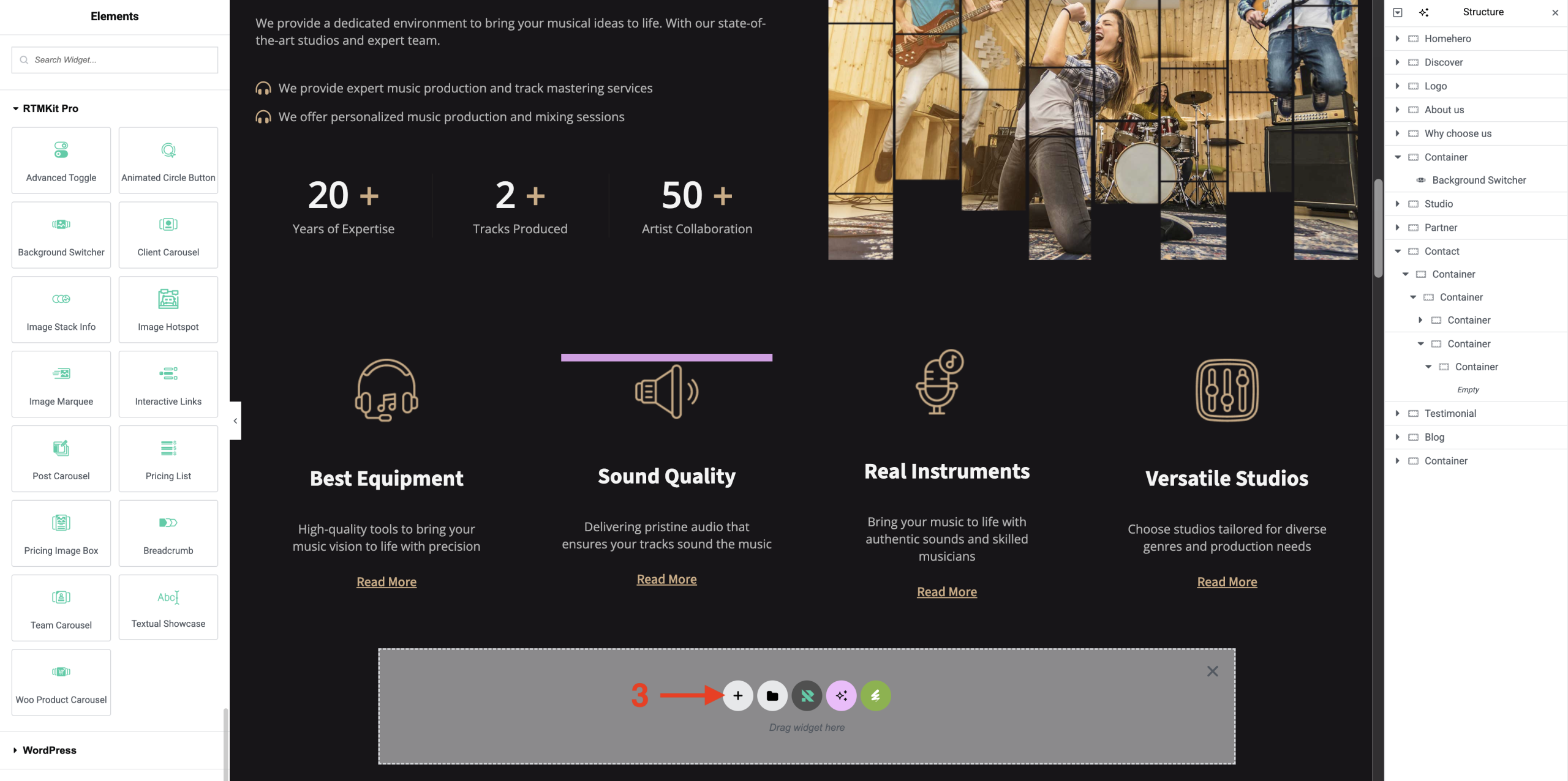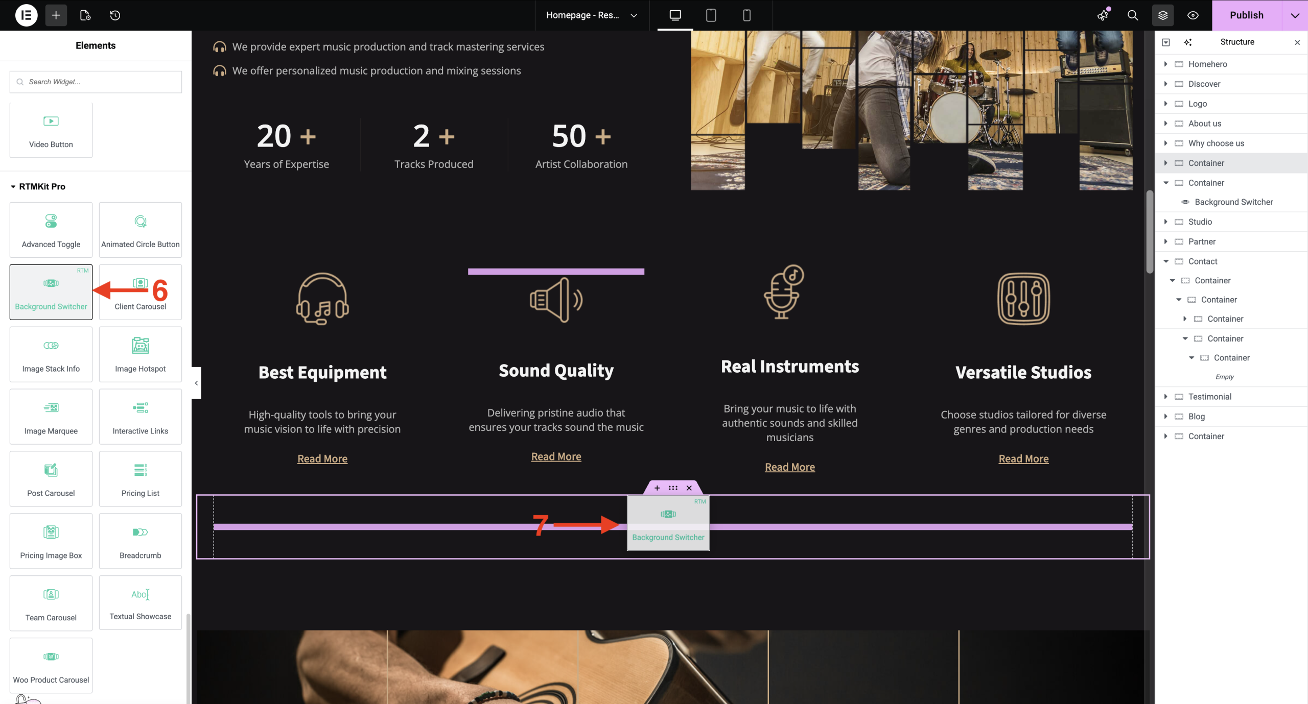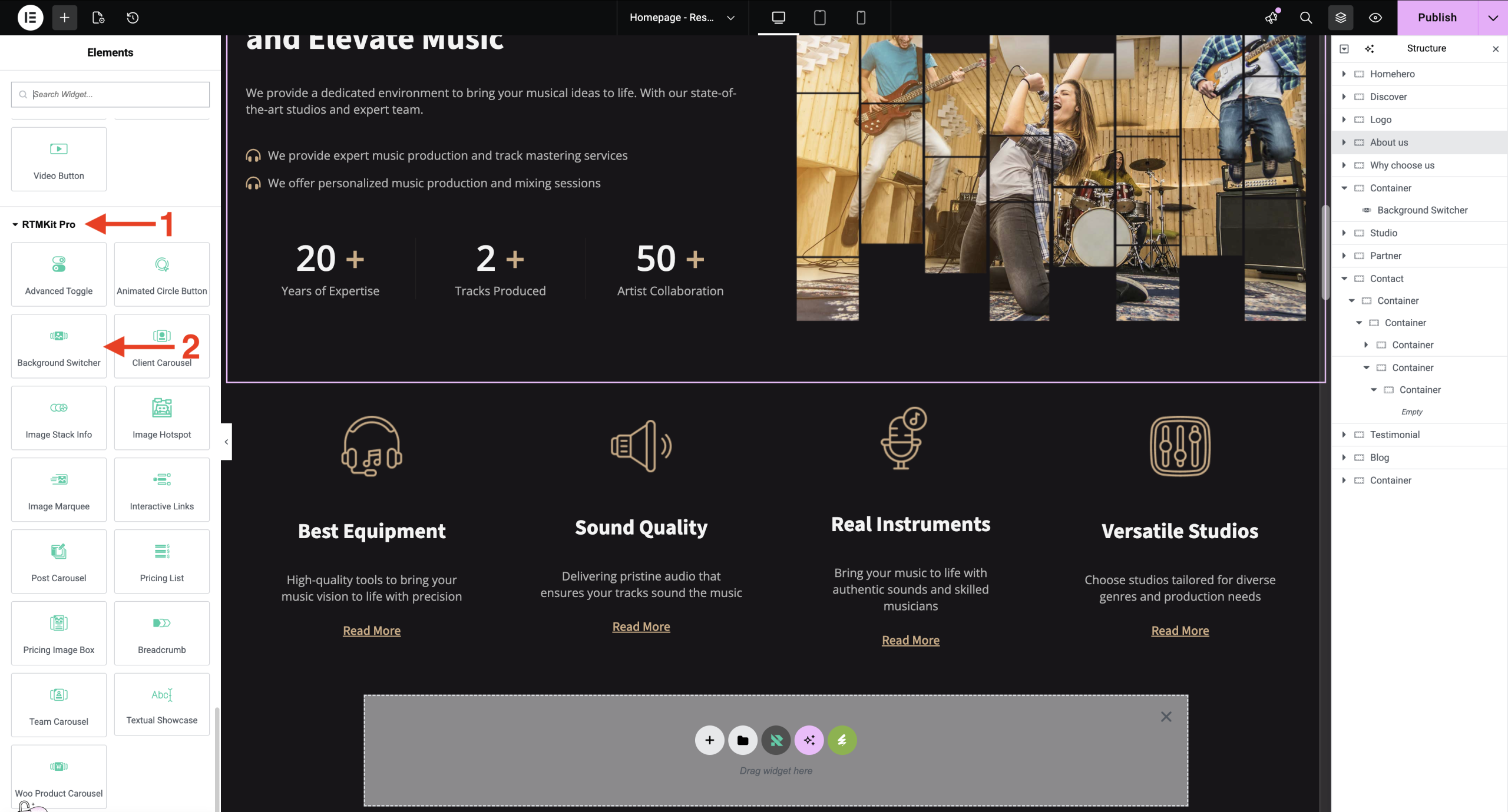 6. Drag the widget from the Elementor