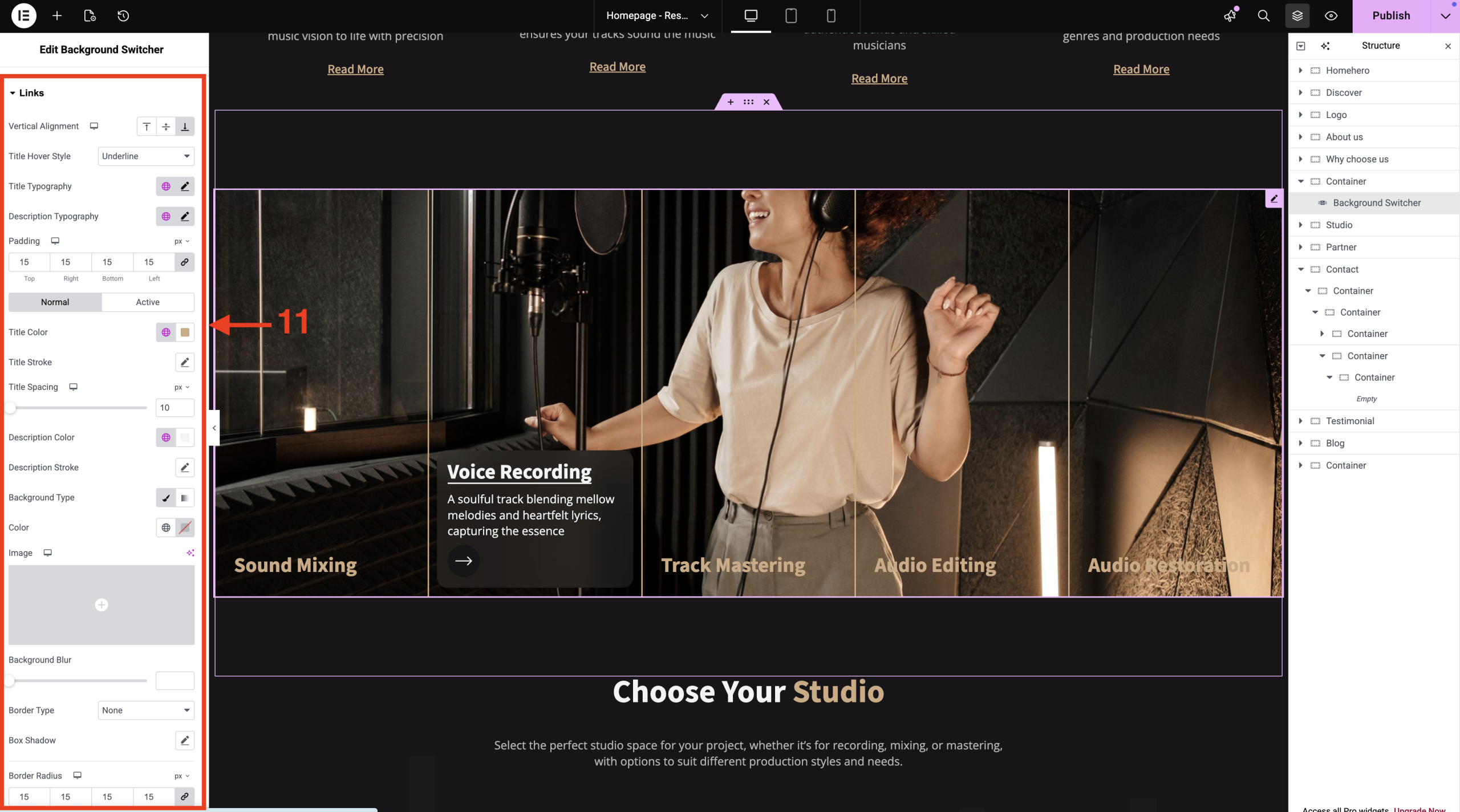 • You can use Links Style to adjust the title and text shown in the Background Switcher.