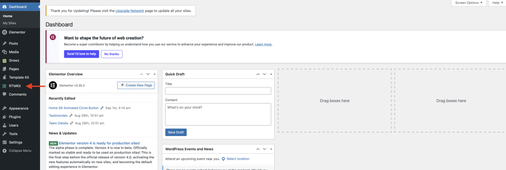• The RTMKit widget does not appear in the Elementor Editor, even though the plugin is active.