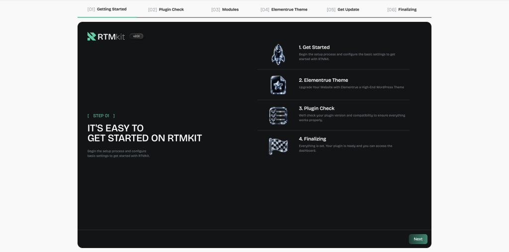 • Run the RTMKit setup wizard.