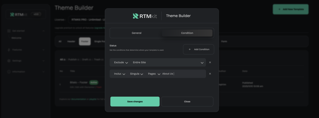 • With the latest update in v2.0.0, you can also add other conditions, such as displaying the footer differently on specific pages, as shown in the picture below.
