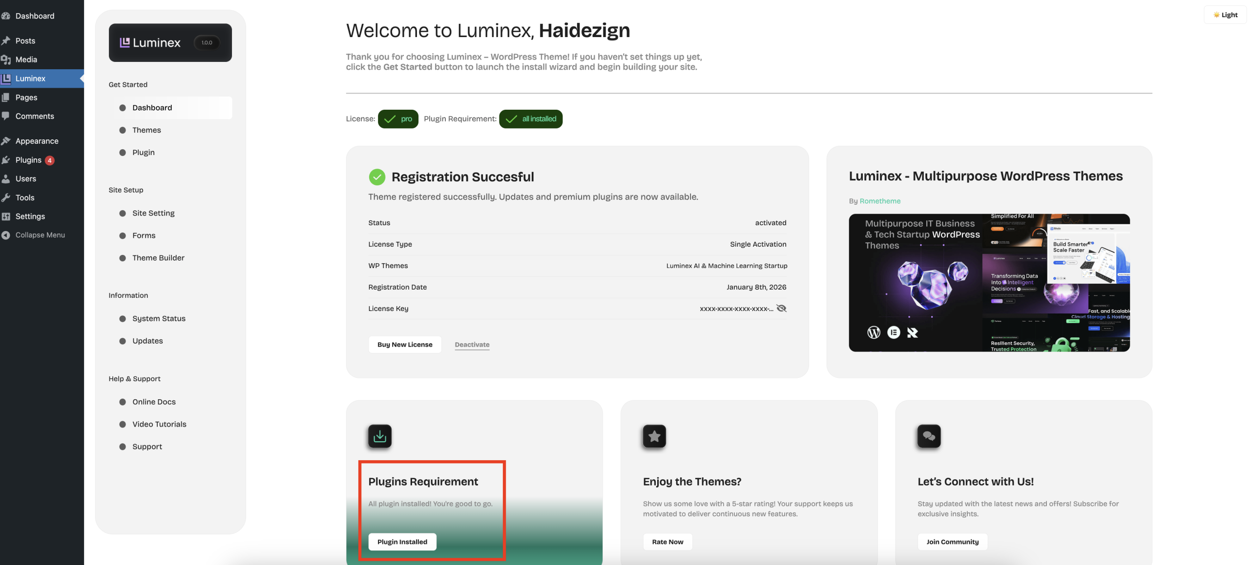 Required plugins are very important and must be installed and activated at all times for the theme to work properly.