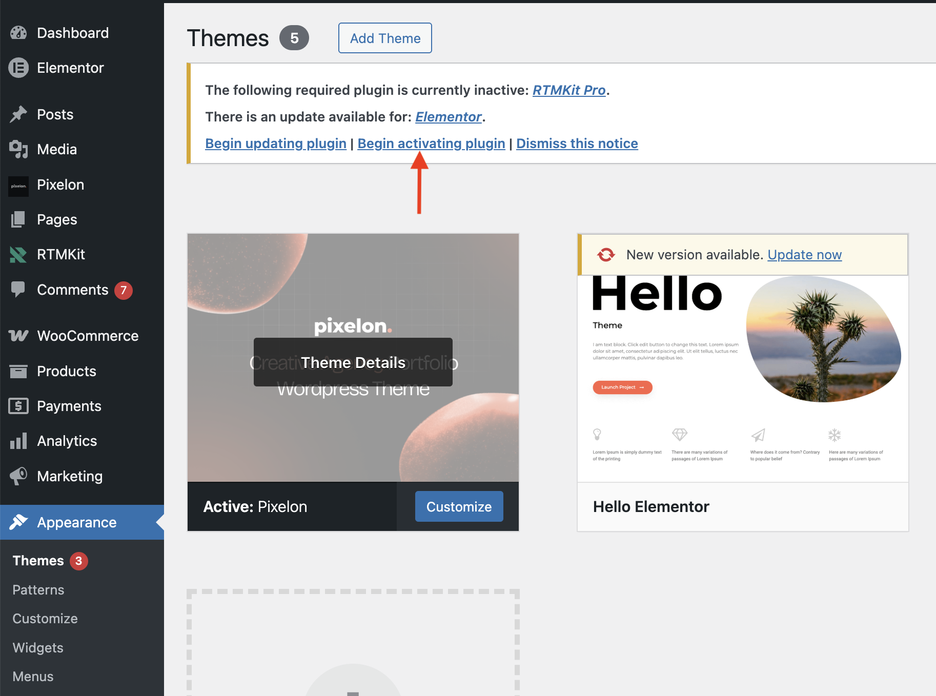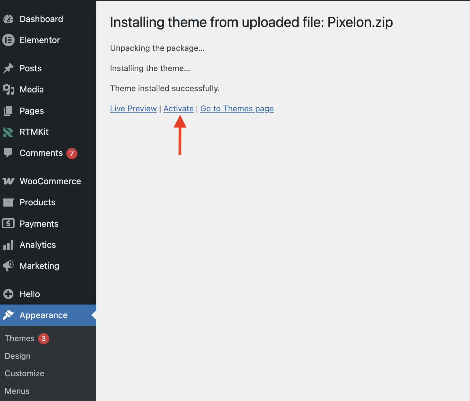 - Activate the newly installed theme by navigating to Appearance > Themes and clicking the Activate button.