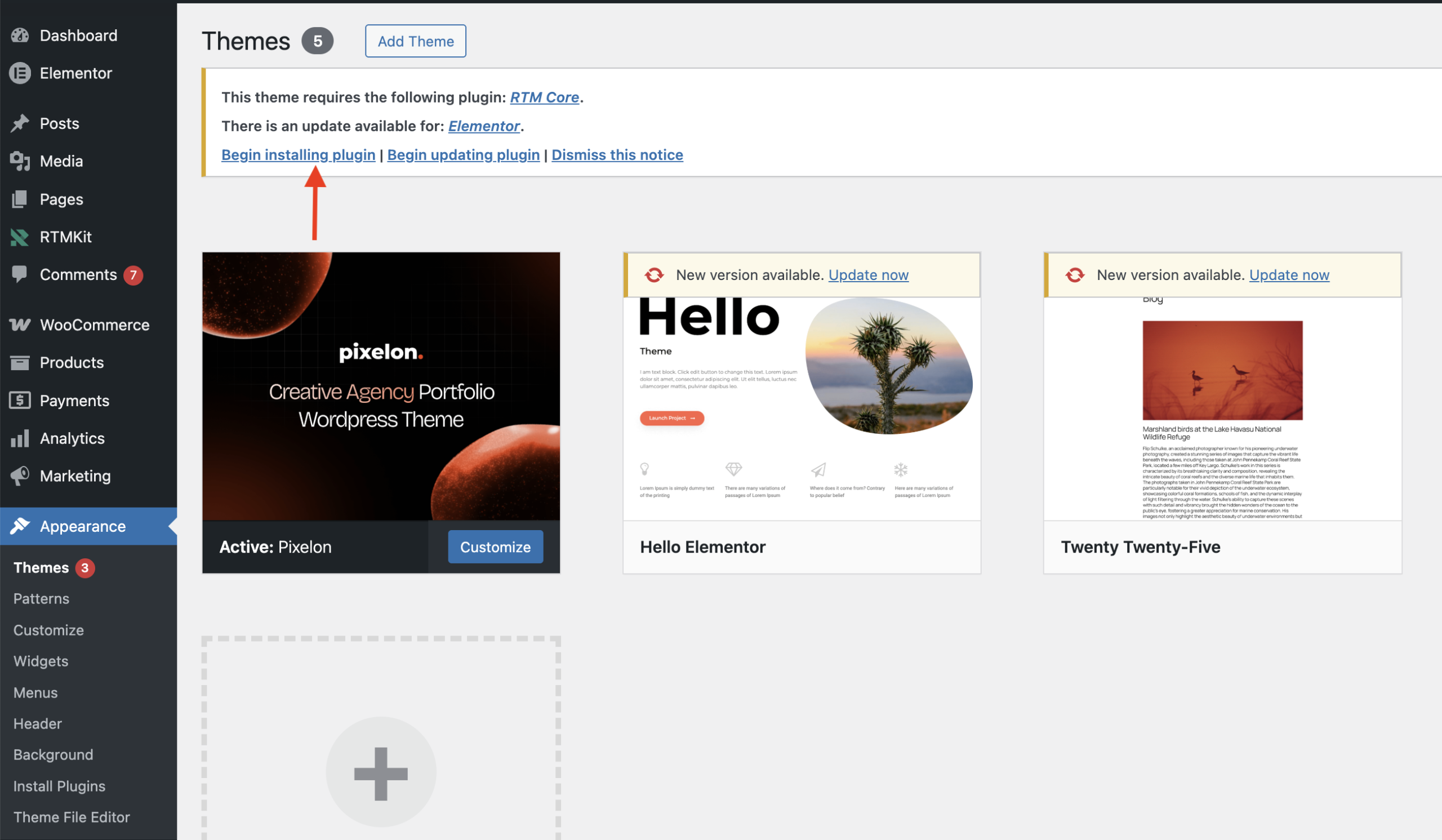 - Once you activate the theme, you will see a notification message to install the required plugins.