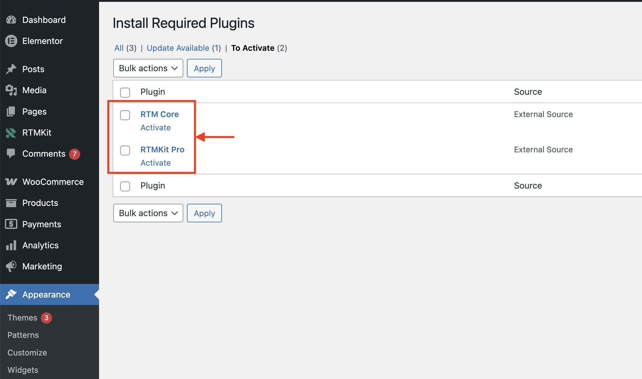 - Activate All Required Plugins by clicking the Activate button, and ensure nothing is left out.